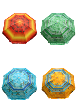 Зонт пляжный фольгированный (150 см в диаметре) 12шт/упак - надежное укрытие от солнечных лучей. Качественный металлический карскас с наклоном. Купол пляжного зонта выполнен из водонепроницаемого полиэстера, с внутренней стороны купол фольгирован, поэтому солнечные лучи отражаются. В раскрытом виде размер купола 1,5 метра. В ассортименте 4 расцветки